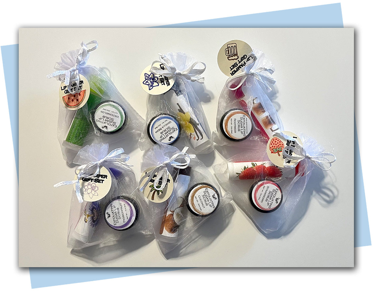 Pamper your lips this winter season! Each set contains a lip balm and matching flavor lip scrub.
