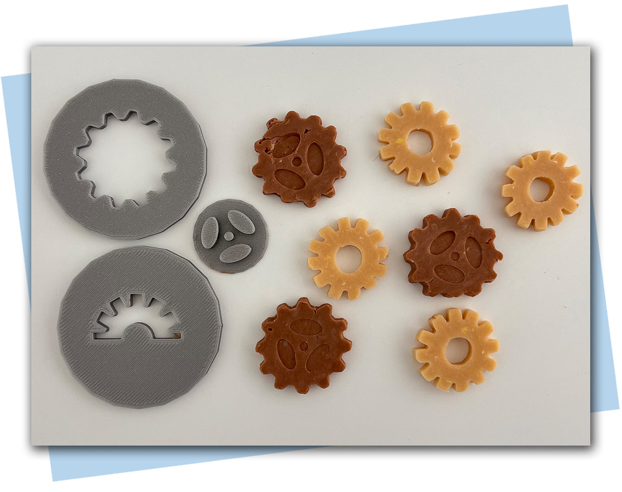 This set comes with two 57mm gear extruder disc and one stamp.