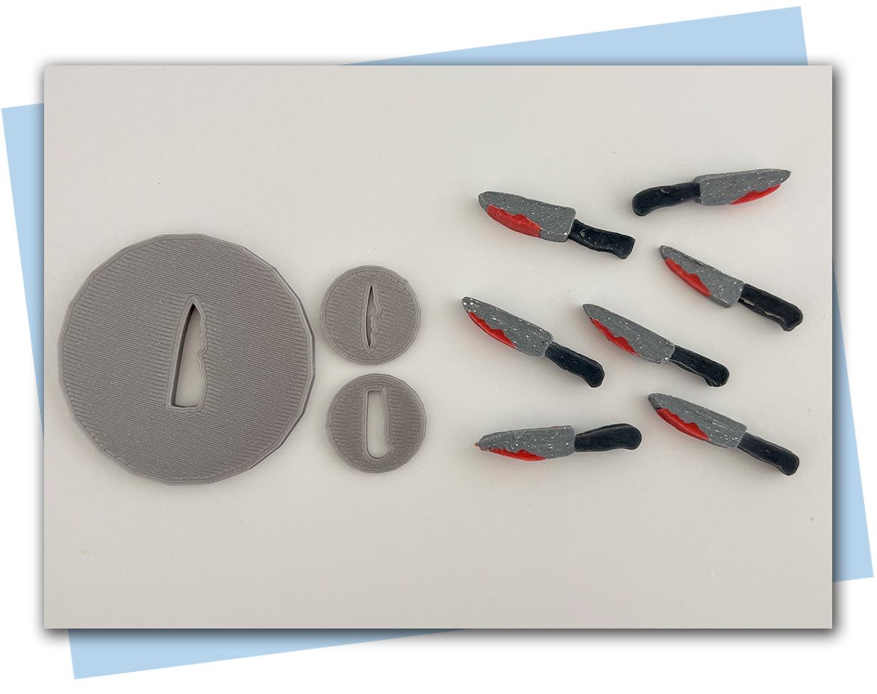 There are two options for this knife set. The Large Knife includes (1) 57mm disc and (2) either 23mm or 24mm disc. The smaller set (no pictured) contains (3) 23mm or 24mm disc.