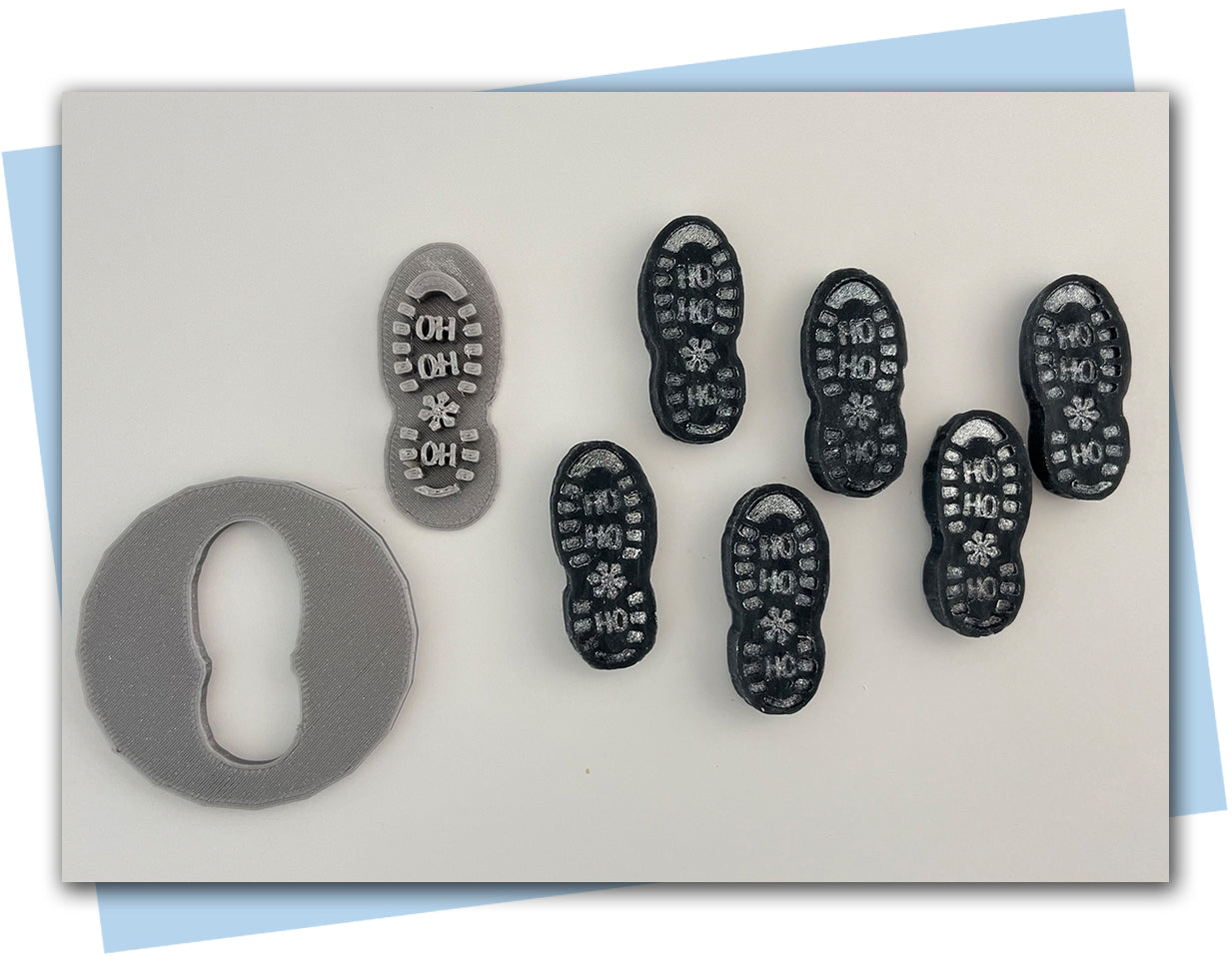 This Santa boot print disc set comes with (1) 57mm disc and a stamp for the boot print.